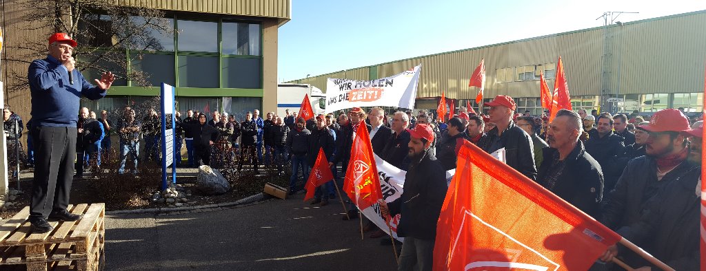 Nachdem die Tarifverhandlungen in der Metall- und Elektroindustrie während der Friedenspflicht Ende des vergangenen Jahres ergebnislos verlaufen waren sollen erste Warnstreiks in der Region den Druck auf die Arbeitgeber erhöhen. Insgesamt 1.500 ZFler der Früh- und Normalschicht sind am Dienstag dem Aufruf der IG Metall gefolgt und versammelten sich zu Kundgebungen in den Werken 1 und 2. Die Spätschicht ist dazu aufgerufen, die Arbeit ab 19:00 Uhr niederzulegen.