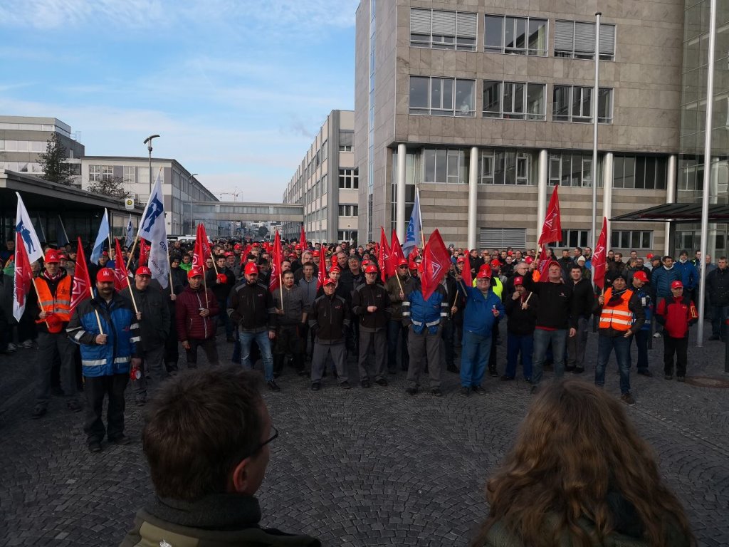 Am Abend ist auch die Spätschicht der MTU dazu aufgerufen, ihre Arbeit vorzeitig niederzulegen. Zudem beteiligten sich am heutigen Mittwoch die Kolleginnen und Kollegen von Schuler in Weingarten, Step-G in Vogt und Robert Bosch Powertools in Ravensburg an Frühschlussaktionen. Sollten die Verhandlungen heute kein Ergebnis bringen, wird die IG Metall den Druck mit weiteren Warnstreikaktionen erhöhen.