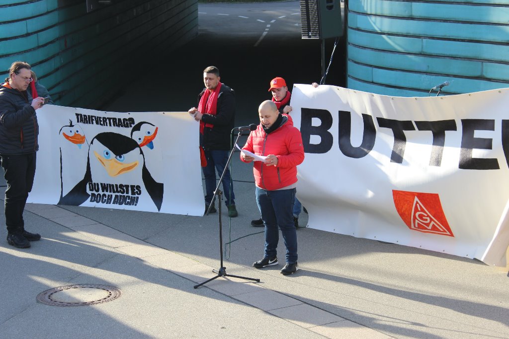 Achim Zinser, freigestellter Betriebsrat bei der MTU Friedrichshafen ergänzte: "In wirtschaftlich so guten Zeiten muss bei uns eine ordentliche Entgeltsteigerung im Geldbeutel ankommen. Schließlich sind wir es, die den Erfolg unserer Betriebe erwirtschaften - Tag für Tag." Die IG Metall fordert in der laufenden Tarifrunde für die Beschäftigten in der Metall- und Elektroindustrie eine Entgeltsteigerung von 6 Prozent bei einer Laufzeit von 12 Monaten. Die Arbeitgeber hatten bisher eine Einmalzahlung von 200 Euro und eine Entgeltsteigerung ab dem 1. April um 2 Prozent angeboten.