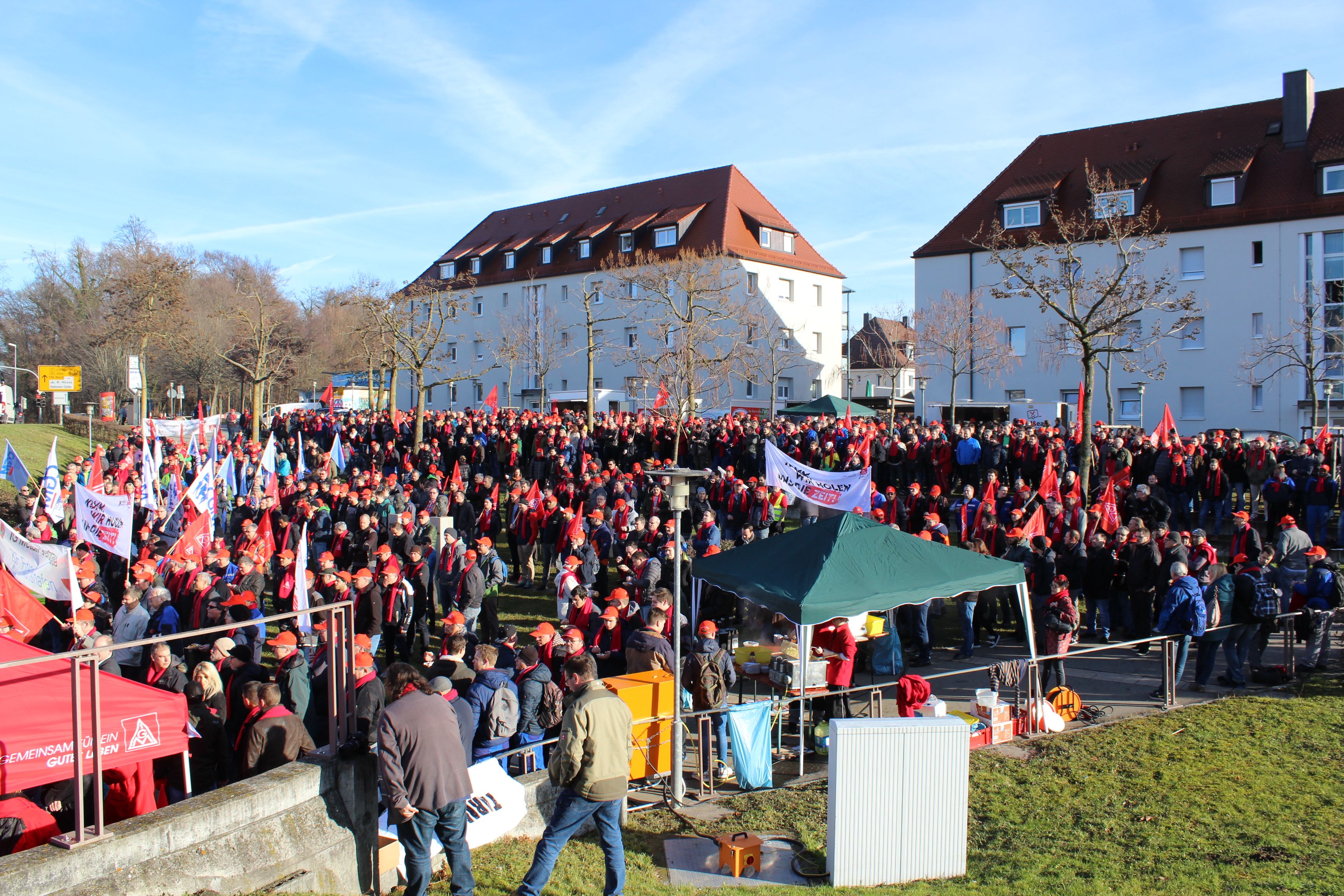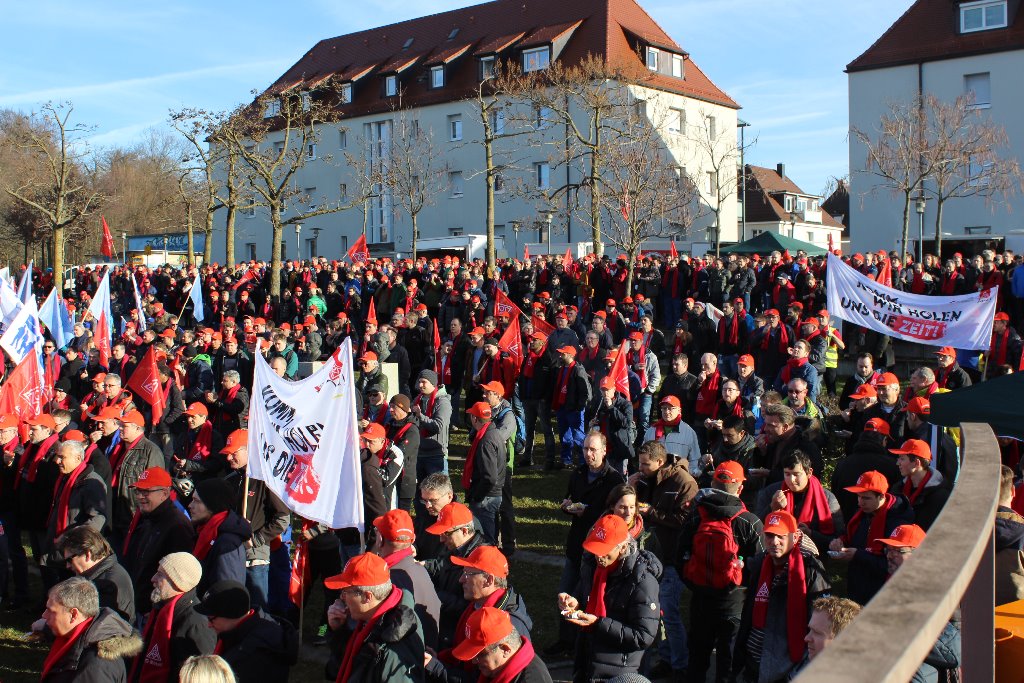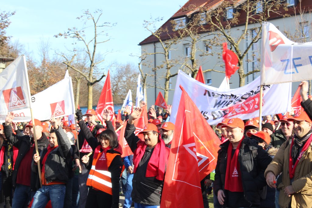 Im Vorfeld der vierten Verhandlungsrunde in der laufenden Tarifrunde in der Metall- und Elektroindustrie versammelten sich über 2.500 Beschäftigte der Friedrichshafener Betriebe zu einer gemeinsamen Kundgebung auf dem Maybachplatz. Insgesamt legten am heutigen Mittwoch mehr als 10.000 Beschäftigte bei ZF und MTU, Zeppelin, MWS, Liebherr und Braun zeitweise die Arbeit nieder.